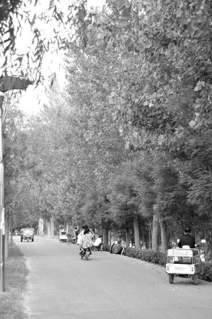 顺着颍河路往西走,过了小闸沙河南岸全是杨树,虽然这些杨树还很小,但种得很密集,因此把阳光遮得严严实实。这一带绿树覆盖面积达80%以上,附近居民都喜欢到这儿乘凉。