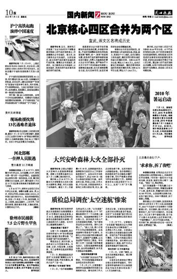 据新华社电 近日,国务院正式批复了北京市政府关于调整首都功能核心区行政区划的请示,同意撤销北京市东城区、崇文区,设立新的北京市东城区,以原东城区、崇文区的行政区域为东城区的行政区域;撤销北京市西城区、宣武区,设立新的北京市西城区,以原西城区、宣武区的行政区域为西城区的行政区域。