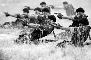 7月3日,参加“友谊—2010”中巴反恐联合训练的兰州军区反恐特战八连官兵双膝跪姿射击。当日,“友谊—2010”中巴反恐联合训练在中国宁夏青铜峡地区正式展开。双方参训分队进行了训练交流。中方参训分队交流了反恐应用攀登、搏击技术、特种驾驶技术、狙击战术、反恐特种射击、反恐班组突入战术等课目,巴方参训分队演示了反恐射击、柔道、VIP护卫、狙击战术应用等课目。新华社发