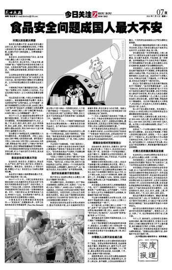 食品安全问题成国人最大不安