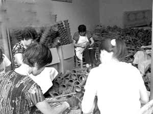 来访的大多数记者都不会想到,这个呜呜祖拉最重要的“生产基地”,会如此寒酸。穿过一个连门都没有的库房,老板的丈母娘会从右手边的厨房中探出头来打招呼,而在那个由客厅改装而成的加工车间里,一边拉家常一边忙着加工呜呜祖拉的女工们,还会停下手中的活计,微笑着点头打招呼。