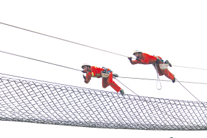 昨天,在周口消防支队,官兵们冒着摄氏37℃的高温,进行穿越障碍训练。连日来,周口气温居高不下,但炎热的天气没能阻挡消防官兵大练兵的激情,他们战酷暑、斗高温,以实战为背景设置残酷逼真的战场环境和对抗情节,在复杂环境下磨练官兵的战斗精神。晚报记者 朱海龙 通讯员 韩剑 摄