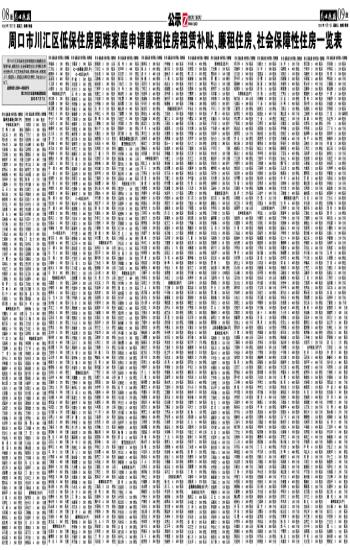 周口市川汇区低保住房困难家庭申请廉租住房租赁补贴、廉租住房、社会保障性住房一览表