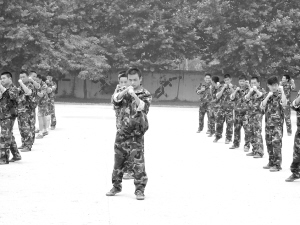 图3:7月7日,西华县新选招的276名巡防队员在进行队列和擒敌训练。晚报记者 高洪驰 摄