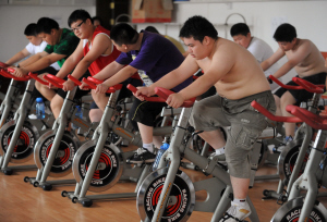 7月13日,“小胖墩”们在进行器械训练。当日,105名“小胖墩”集中到杭州诺特青少年减肥夏令营,开始参加为期20余天的减肥训练。夏令营实行封闭式管理,按年龄段分别制订不同的运动训练计划,通过武术、瑜伽、篮球、体育竞技游戏和健康营养课等项目,让“小胖墩”掌握科学健康的饮食和运动习惯。新华社记者 徐昱 摄