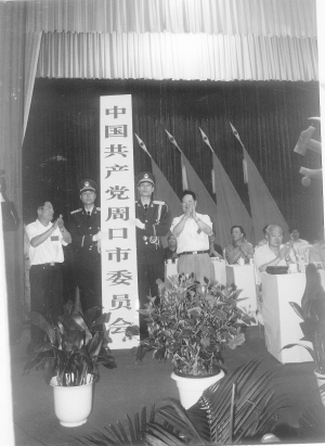 8月2日,周口饭店彩旗招展,鼓乐盈耳,处处洋溢着节日的喜庆气氛——周口一千万人民期盼已久的撤地设市暨中共周口市委员会成立大会在这里隆重召开。