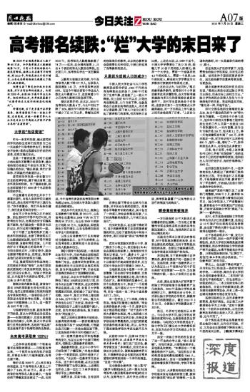 而就南方周末记者采访的情况看,对于录取批次靠前的高校,还未到生源危机的程度,而对于录取批次较低的高校,生源压力越来越明显,有些学校甚至面临破产的危机。