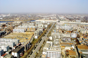 小图:10年前,站在高处俯瞰周口市区中州路,道路两旁的楼房最多有五六层高。(朱星光 摄)