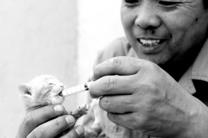刘建国供职于辽宁盘锦鼎翔米业有限公司,他既不负责卸货也不负责入库盘点,但他却处处受到敬重,因为他负责的是一项极为重要的工作——训练猫。鼎翔米业粮库里存放的都是盘锦有机大米,化学合成鼠药可能对大米的品质有影响,于是公司开始利用家猫灭鼠。刘建国训练的“猫咪护卫队”共有大小猫近100只。几年来,在刘建国的调教下,这些猫已经被训练成侦察猫、潜伏猫、巡逻猫,老刘也因此被大家称作“猫司令”。