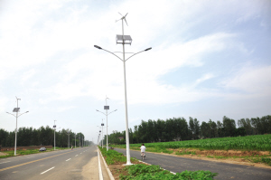 这些路灯同时拥有太阳能电池板和风力发电机,既可以用太阳能发电,也可以用风能发电,弥补了风能供电或太阳能供电的单一性,多余的电能储藏在电池里,不需要电业部门架设线路供电,可以节省大量线材和电损耗。