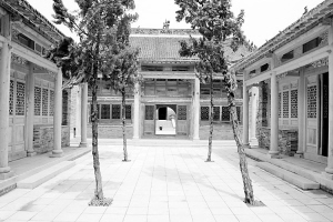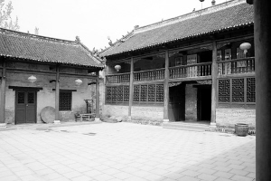 中组院落有3个天井院,为袁世凯的三爷袁重三修建,走马门楼、门楣栏板上有彩雕“紫气东来”,亦分前、中、后3个大院。前院正面是3门客厅,两边是东西厢房。中院正面是5间腰楼,东西厢房各3间,总面积2800平方米。各屋摆设的皆是楠木家具,墙上挂着名人字画,现存有前院的大厅和堂楼,保存完好。