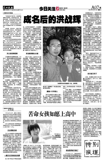 7月23日上午,鹿邑二高的王艳芝和何卫东两位老师驱车来到贾滩镇敬老院,把苦命女孩武纪雪提前接到学校,并许诺免去她高中3年的学费。在这个天气并不晴朗的日子里,武纪雪的心情很舒畅,笑得很灿烂。