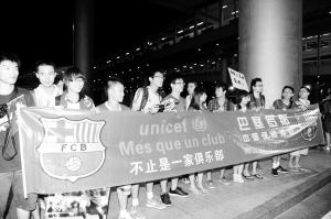 由于球队是在凌晨时分到达,原本以为不会有多少人专程赶来接机。但巴萨铁杆粉丝的热情,还是超出了记者的想象。一百多名来自全国各地的球迷组成了“联合纵队”,外加几十家媒体,把候机大厅堵得水泄不通。