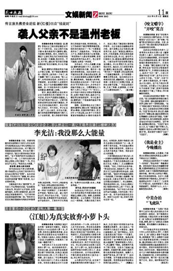 王珞丹继《杜拉拉升职记》后,再一次领衔电视剧版的热映电影,有媒体就指出:“王珞丹总是跟在别人屁股后面走,电影红了,又去演翻拍的电视剧。”对此,王珞丹也有些无奈:“我也没有办法,老是赶不上第一波。其实自己也是电影学院毕业的,也能演好电影。”提到外界对她演出静秋一角的质疑,王珞丹耐心地解释:“演杜拉拉前,大家也不看好我,但事实证明观众还是接受了。所以演静秋,我还是这样的心态。而且《山楂树之恋》能填补我角色上的一个空白,喜欢这样的挑战。”对于再次与李光洁合作会不会尴尬,王珞丹坦承:“多少会有一些,但不会把戏里的东西当真。戏里可以走到一起,但戏外并没有走到一起。”(余姝)