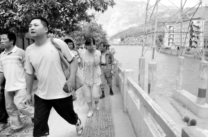 部分灾民已被转移至高地和房顶。自灾情发生以后,舟曲县委、县政府就一直在对县城居民组织转移。
