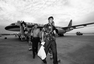 8月7日,192名从巴基斯坦洪灾中解困的中国工程人员乘南航包机安全回国 ,回国的中国工程人员走下飞机。当日20时24分,在巴基斯坦洪灾中受困获救的中国工程人员首批192人乘坐南航包机,安全抵达乌鲁木齐国际机场。他们在乌鲁木齐休整后将飞赴郑州等地。新华社发