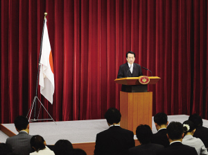 本报综合消息 据韩联社报道,在韩日强制合并100周年即将到来之际,日本首相菅直人10日上午在内阁会议上发表谢罪谈话(右图),对于殖民统治造成的损失和痛苦,表示再一次的痛彻反省,并由衷地表示了歉意。