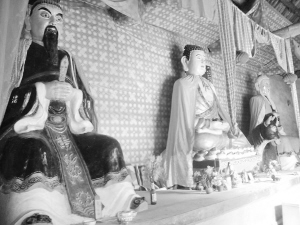 ▲寿圣寺塔内供奉的孔圣人、佛主和太上老君塑像