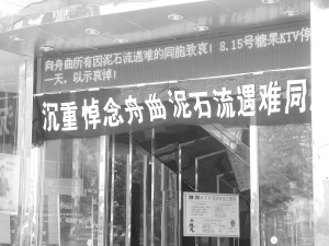 记者在八一路某娱乐场所前看到“沉重悼念舟曲泥石流遇难同胞”字样的条幅,平时门庭若市的娱乐场所昨天空无一人。