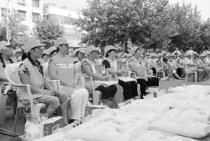 8月13日上午,鹿邑县总工会联合一爱心企业为该县400多名环卫工人送去了大米、食用油、文化衫、茶杯等慰问品。