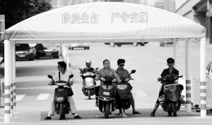 8月17日,几位骑电动车的市民在长沙市芙蓉路的一处遮阳棚下等候通过路口。面对高温酷暑天气,长沙市交警部门近日在长沙市区交通要道路口的非机动车等待区架设起大型遮阳棚,让骑自行车和电动车出行的市民在等候红灯时能免受烈日暴晒之苦。新华社发