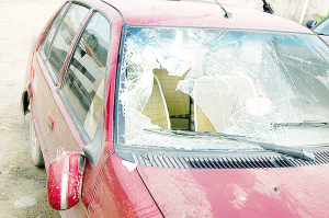 当晚9时许,按照该县“平安一号”综合治理行动要求,太康县交警大队在该县逊母口镇各主要路口设立了15个卡点,对过往车辆进行检查。当晚10时40分许,在逊母口镇东50米处,见自西向东驶来一辆轿车,执勤民警挥动夜光棒示意停车,但该车却强行闯卡而去。附近另一卡点的执勤民警见此情景,也拿着夜光棒站在路中间进行拦截,没想到该车再次强行闯卡。借助灯光,民警发现该车是一辆夏利出租车,右前挡风玻璃严重破碎(如图),且故意遮挡了后车牌。