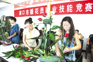 昨天,市插花员职业技能竞赛在市林业局三楼举行。选手们不论男女,插花技艺都很精湛,作品浓淡相宜、搭配巧妙,充分展现了选手们的动手能力和审美能力。这次竞赛是市林业局和市人力资源和社会保障局联合举办的。晚报记者 朱海龙 摄
