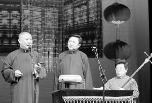 本报综合消息 据北京一位不透露姓名的相声界人士介绍,北京的相声演出市场,德云社所占份额超过一半,余下的则由嘻哈包袱铺、贾玲、徐德亮等人领衔的小剧场、茶馆瓜分。这几年,虽然其他人也拼命在表演形式、内容上创新,但始终没有威胁到德云社的领先局面。