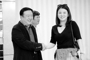 李湘(右)来到现场向尤小刚“取经”