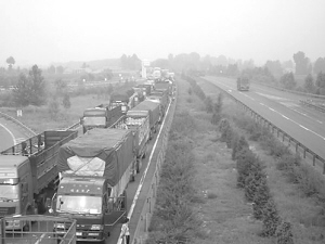 记者调查发现,造成拥堵的主要原因是客货混行,除了造成交通拥堵外,大货车排出的尾气也严重困扰着延庆这个北京空气相对清洁的地区。