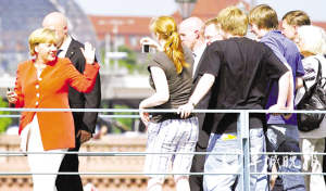 8月22日,德国总理默克尔亲任“导游”向参观者打招呼。当天是德国政府开放日,民众在这一天可以参观政府的各个部门。
