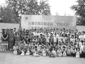 8月25日,在全国青联十一届全会召开之际,团省委书记、省青联主席带领豫籍全国青联委员和部分学联代表90多人在团市委负责人的陪同下,到北京朝阳区甘露园社区看望慰问了周口籍务工青年,并为该社区的50名周口籍务工青年子女代表发放了包括电脑、打印机、图书等在内的价值56000元的学习用品。图为发放现场。 晚报记者 王丽丽 摄