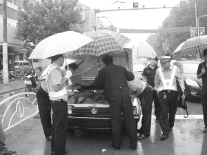 昨日上午,细雨如丝。省交警总队和郸城县交警队20多名交警冒雨在郸城县新华路与西环路交叉口设立临时纠查点,对十字路口实施四面堵截,一辆车也不放过。记者在现场看到,一些自称在某职能部门“有熟人”的违章车辆均被查扣。车辆被查扣时,这些车主不忘套关系:“某某局长是我哥哥,某某副局长是我老表……”交警们根本不理会这一套,将违章车辆一一扣下。一些雨中看热闹的市民看到交警冒雨秉公执法,不时报以热烈的掌声。