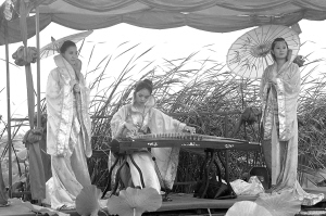 土生土长的东关居民、60岁的叶先生告诉记者,打从他记事起,湖中就有大片大片的天然莲花,从品种上可分为红莲花和白莲花,花期较长,从每年6月份至9月份,红荷、白荷次第开放。“我们几辈人都在这湖边儿住,这里空气好,又没污染,这水有灵气呀!我们村活到八九十岁的多得很。”“这湖从啥时候开始有的?”记者问。“打从我记事起,我就下湖捉鱼摸虾。”“有人祖伏羲的时候就有这湖啦?”“这说不准,反正得有好几千年了……”几名船工七嘴八舌地说。