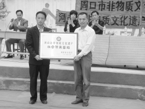 本报讯 昨日,记者从市文化部门得到了一个令人欣喜的消息:继李庄小学之后,川汇区牛营小学也被我省确定为第二批河南省非物质文化遗产心意六合拳社会传承基地,授牌仪式于8月27日在牛营小学校园内举行。