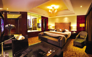 该客房所拥有的卧室、卫生间透视功能,则打破了客房传统模式,改卧室、卫生间隔断墙为透明调光玻璃隔断,根据个性需求,可使该玻璃透亮或屏蔽。还有,客房客用物品舒适环保,床上布置、“四巾”均采用全棉环保材质。客用床垫干爽透气、弹性十足,令您坐上去就会有不小心“陷”进去的感觉。