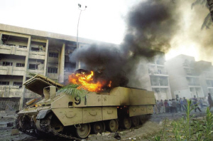 2003年5月1日,伊拉克战争开始不足两个月,时任总统乔治·W·布什在美国海军“亚伯拉罕·林肯”号航空母舰上说:“伊拉克主要战事已经结束。美国和我们的盟友们胜利了。”航母甲板上当时悬挂着一条巨幅标语,上书“使命完成”。