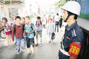 昨天,是我市各中小学、幼儿园新学期开学首日。当日清晨,周口市区各中小学、幼儿园校门前,专职校园保安全部整装上岗。