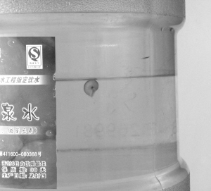 昨日,周口市区居民杜先生称,他们单位一直饮用的某品牌桶装矿泉水里竟出现了一只蜗牛,对此,他和同事都很震惊。据悉,该品牌桶装矿泉水相关负责人对此事深表歉意,并于当天赔偿了杜先生单位一桶新矿泉水。晚报记者 朱东一 摄
