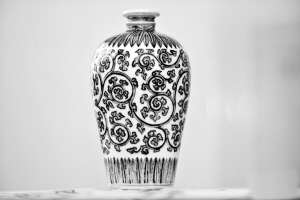 预展上展示的估价为2000万至3000万港元的明成化青花“缠枝卷草”纹梅瓶。