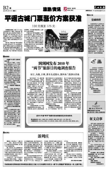 《2010年度“两节”旅游目的地调查报告》目的地排名