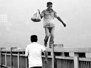 本报综合消息 一位年过半百的老伯,竟然踩在大桥的栏杆上,闲庭信步(下图)……这并非是武侠片中的片段,而是9月3日7时,掌上拍客张先生在重庆石板坡长江大桥拍摄到的一幕,张先生说,老伯在栏杆上行走的速度不输给常人在大道上步行的速度。同时在网上,也有很多网友称目击到了这一幕,并将当时的所见所闻发在了网上,很多网友都称老伯为“轻功哥”。