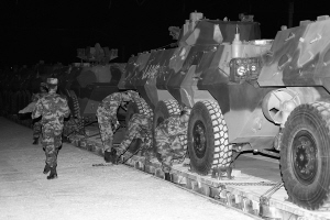 当日凌晨,“和平使命-2010”联合军演中方参演部队第一梯队安全准时抵达哈萨克斯坦境内演习地域。新华社发