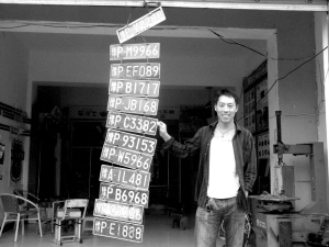 这两天下大雨,周口市区道路上有很多积水,一些车辆的车牌被水冲掉。在光荣路做汽车装饰生意的宋卫新带领员工,从水中捞起20多个车牌,用线穿起挂在自己店门口,等待车主认领。现在还有17个车牌未被认领,他希望所有的车牌都能尽快找到主人。晚报记者 朱东一 摄
