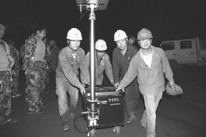 调集人员、调拨物资……18时41分,电力部门组织的第一批抢险队员120人,携带4台应急发电灯,60支便携应急灯到达现场。这些应急发电灯刚刚买回,是第一次投入使用。