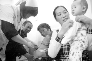 9月11日,在淮阳县卫生防疫站,医务人员为幼儿注射麻疹疫苗。当日,河南各地全面开展麻疹疫苗强化免疫活动。按照卫生部统一部署,9月11日至20日,河南全省所有8月龄至14周岁的儿童(包括流动儿童),即1995年10月1日至2009年12月31日出生的儿童,无论既往麻疹疫苗免疫史及患病史如何,凡无麻疹疫苗接种禁忌症的儿童,均接种1剂次麻疹疫苗。