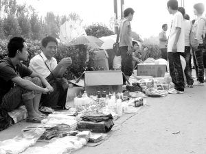 本报讯 近几天,我市高校陆续迎来报到的新生,瞄准“新生商机”的大三、大四学生则忙起了练摊。昨日,记者在我市一高校校外的马路边看到,不少大三、大四学生利用课余时间,拿出部分生活费做本钱,来淘金。