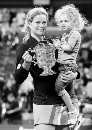 去年夺冠后,小克抱着女儿Jada和冠军奖杯的画面仍然历历在目,今年夺冠后,她则是和丈夫在看台上温馨地拥吻,对小克来说,在法拉盛的回忆太过精彩。淡泊名利的小克不是为了大满贯冠军、为世界第一而重返巡回赛,只是对网球的热爱才让她再次踏入赛场。曾经表达希望在2012年后再度退役,为女儿增添妹妹、弟弟的克里斯特尔斯留给球迷的时间不多了,不过对一个女人来说,有一个幸福的家同样是可遇不可求的事吧。(刘晓星)