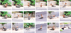 昨天, 在周口公园,一只头顶有醒目羽冠,嘴细长往下弯曲的戴胜鸟在记者的镜头前大秀了一把。为留住它神气活现的模样和翘首摆尾的姿势,记者决定花点儿时间,通过与戴胜鸟的一番情感交流,鸟儿开始左扭扭,右扭扭,摇摇头,摆摆尾。晚报记者 朱海龙 摄