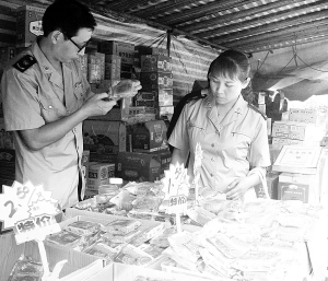 左图:9月14日,西华县城关工商所工作人员在突击检查食品销售市场。中秋、国庆“双节”临近,为确保市场上销售的月饼、饮料、油炸食品等食品的安全,西华县工商局加大对食品市场的监管力度监管。